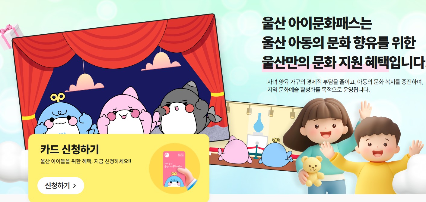 - 신청 방법: '울산아이문화패스 누리집' 접속 후 회원가입 및 본인 인증 시 주소지로 카드 발송